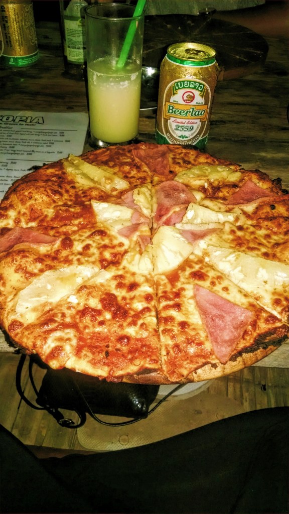 Interested in eating? There are plenty of places to grab some typical Laotian grub, as well as some more “Western” options for food. Utopia eatery has some of the most romantic and exciting views. Picture eating in a magical tree house, Indian style on colorful pillows and mats as the sun goes down over the water. There are tropical trees all around, and dancing lights from candles illuminating the scene. Utopia also doubles as a yoga studio during the day. It definitely reminds me of the Green Room in Costa Rica.