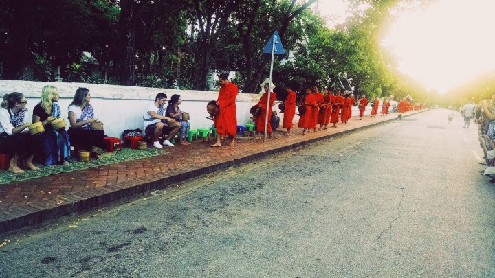 One of the most popular and bucket-list-worthy activities for tourists and locals alike is giving alms to monks. You must awake as early as 3 a.m. to be ready to meet the monks on their procession through town. Monks may only eat what is given to them throughout the course of the day, and thus depend on the alms. Givers can line up with food—in our case rice—to hand out to the procession. It was one of the best reasons ever to wake up early.